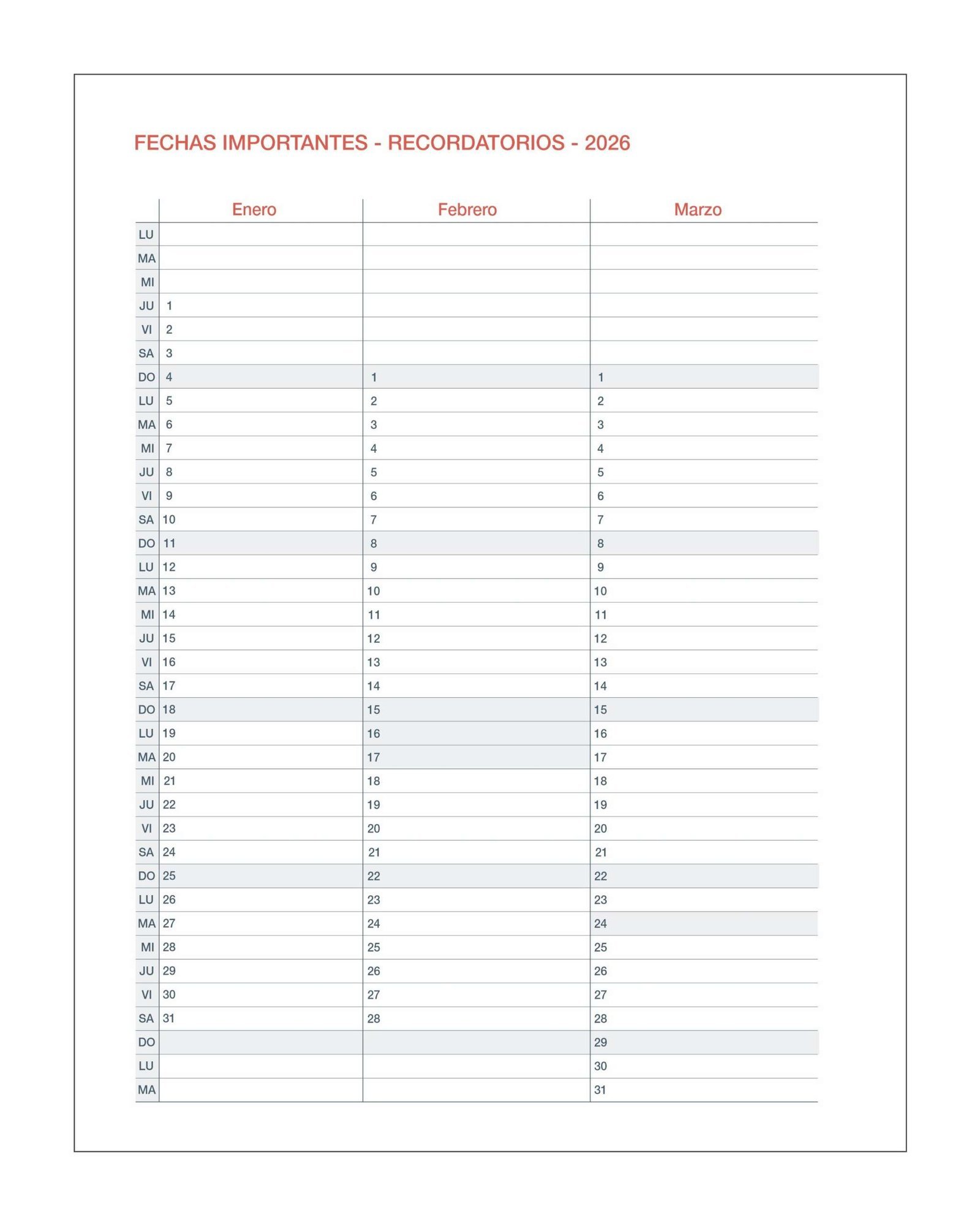 Agenda 2026 Semanal |