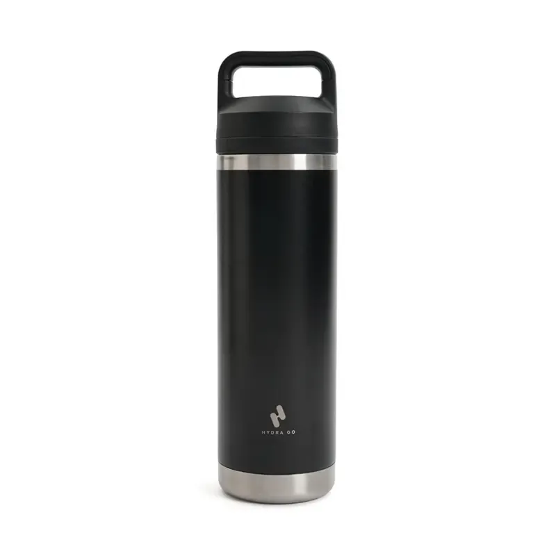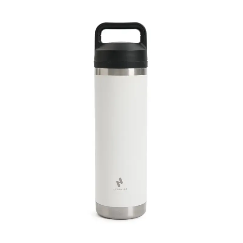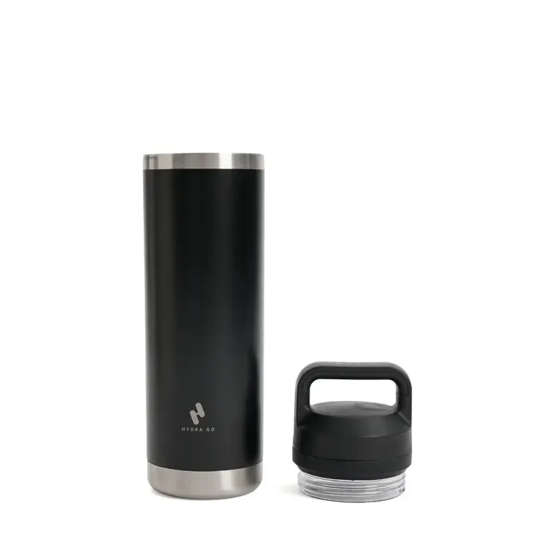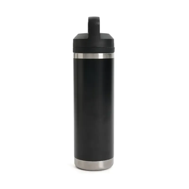 Botella térmica con manija integrada fabricada en acero inoxidable. Hecha con cuerpo interior de acero inoxidable 304, exterior y base de acero inoxidable 201 y tapa de polipropileno, AS y silicona. Cuenta con doble pared aislante, tapa a rosca con cierre hermético y manija ergonómica incorporada para fácil transporte. Es ideal para mantener tus bebidas frías o calientes durante el día, perfecta para la oficina, actividades al aire libre o viajes.