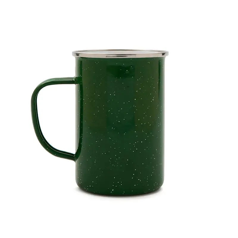 Taza esmaltada de acero inoxidable 304 con acabado en hierro y esmalte, fabricada con materiales duraderos y resistentes. Cuenta con diseño clásico y asa ergonómica que asegura un agarre cómodo. Es ideal para disfrutar de café, té o infusiones tanto en casa como en la oficina o actividades al aire libre.