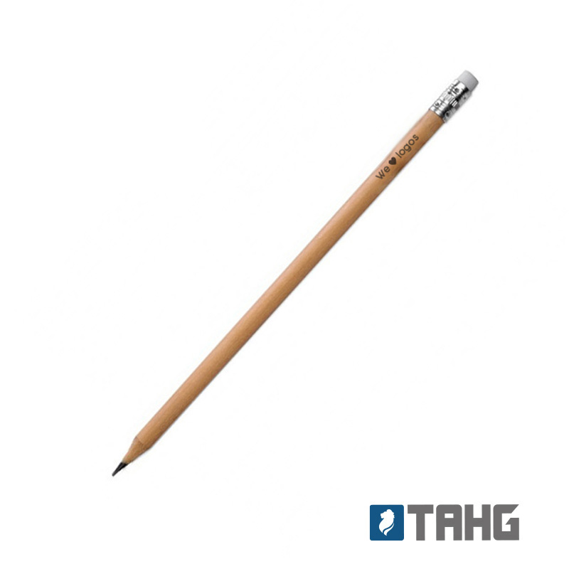 Lápiz negro con goma. Realizado en madera con detalle de aluminio en reborde de goma. Material de la goma: Caucho. Punta sin preafilar. Medidas: 189 mm x 0,8 mm. Mina: 2mm. Tahg