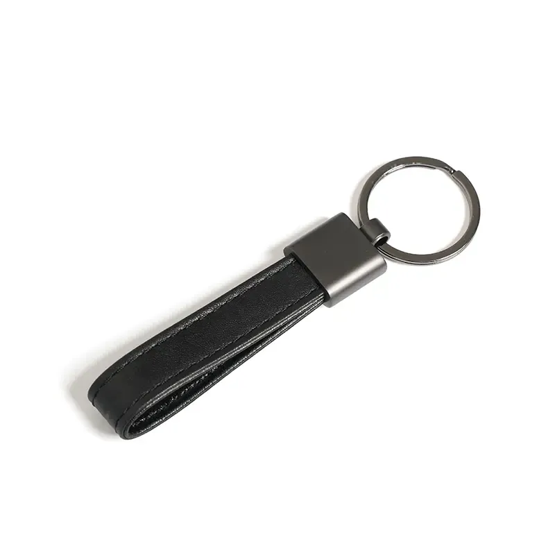 Llavero con tira de PU negra y cuerpo metálico robusto fabricado en aleación de zinc con anillo de hierro, pensado para ofrecer durabilidad y sofisticación. Cuenta con una estructura firme y anillo metálico que permite una sujeción segura de las llaves, aportando funcionalidad con diseño profesional. Es ideal para el uso cotidiano, regalos empresariales o eventos promocionales.