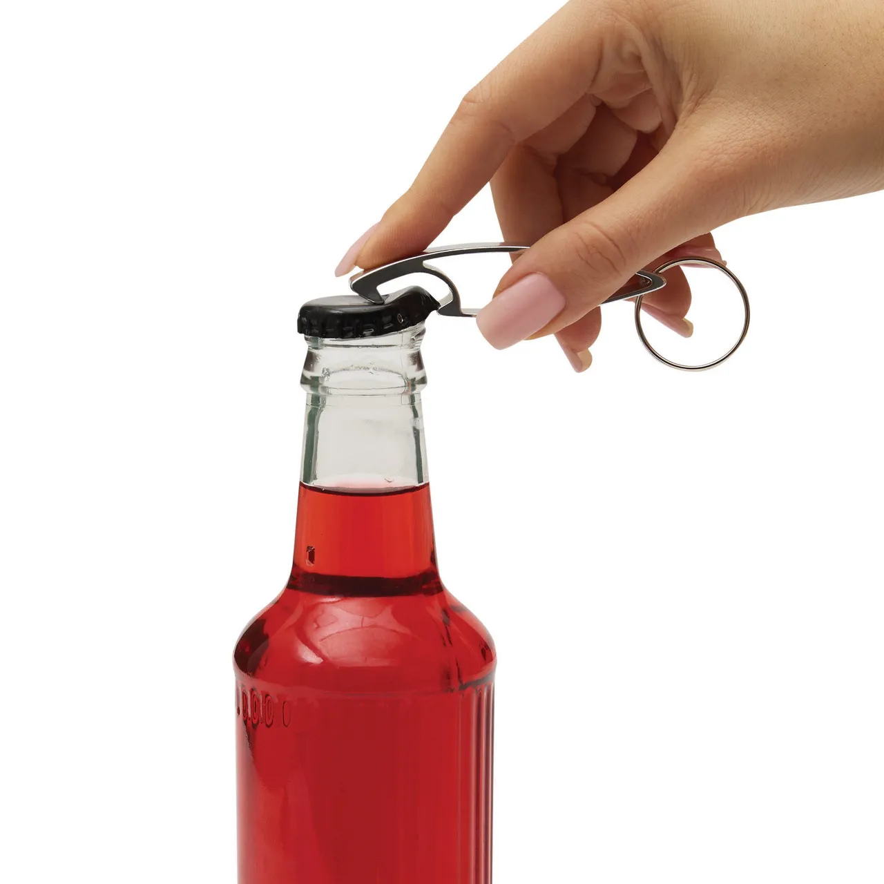Pequeño y práctico Llavero destapador. Pintura acabado brillante. Medidas: 6,7 x 1,08 x 1,48 cm.