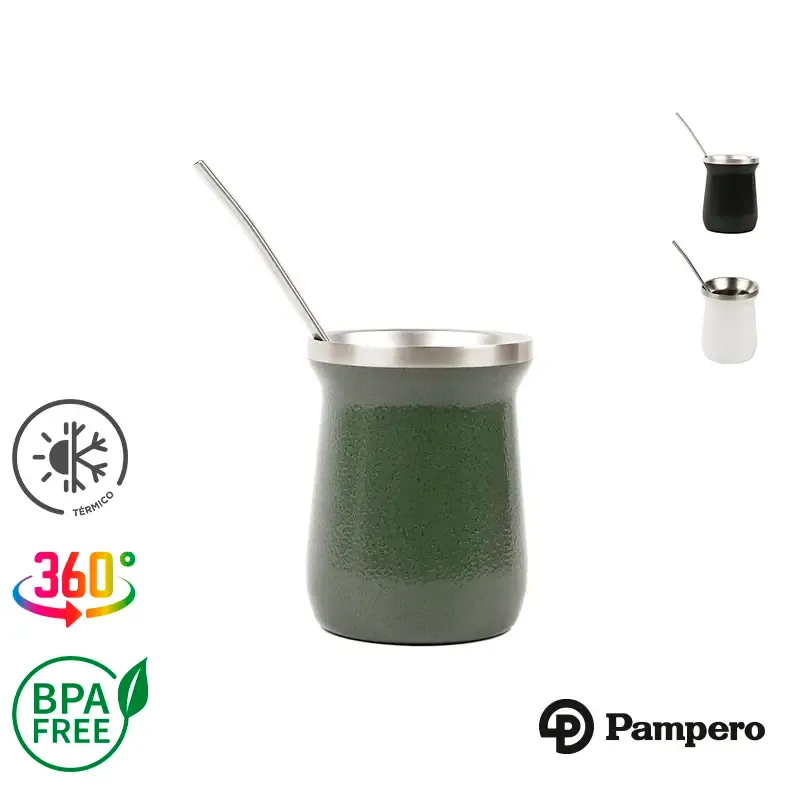 Mate térmico mini de acero inoxidable. Fabricado en acero inoxidable con interior 304 y exterior 201. Es ideal para disfrutar mate en cualquier momento, en casa, oficina o viajes. No traspasa sabores ni aromas a tu yerba.Incluye bombilla de acero inoxidable.