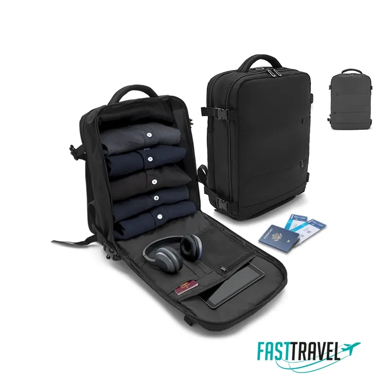 La Mochila Flight está confeccionada en nylon y presenta cierres con cabezal metálico color negro. Cuenta con un compartimiento primario amplio, con bolsillos internos para guardar objetos pequeños y, un compartimiento secundario porta notebook. También, posee dos bolsillos frontales y uno trasero, ideales para guardar aquellos elementos que necesitas a mano, como el celular, llaves o la billetera. Además, tiene un bolsillo aislado en la parte inferior, diseñado para guardar calzado sin ensuciar el resto de tus pertenencias. Espalda y correas regulables acolchonadas, con broche en las mismas para un transporte más cómodo. Incluye cinta para ser transportada junto con valija carry on. Con la mochila Flight, tendrás la comodidad y el espacio necesario para llevar tus cosas de manera ordenada y segura. ¡Perfecta para cualquier ocasión! Medidas: 42 x 30 x 14 cm. Capacidad 18 litros. Notebook 14″. Fast Travel.