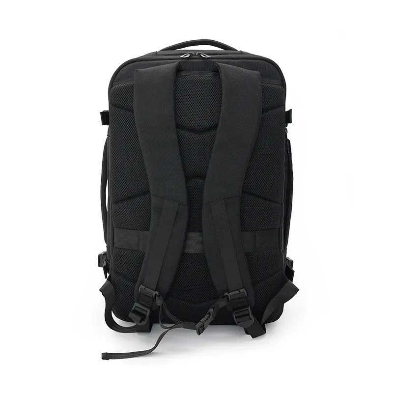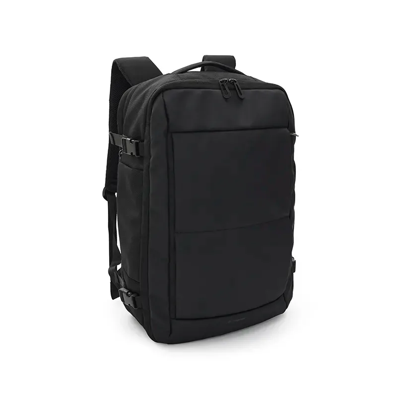 Mochila de viaje expandible. Fabricada en poliéster 1800D en el frente y 2520D en la parte trasera y base, cuenta con múltiples compartimentos con cierre, sistema de extensión para mayor capacidad, bolsillo frontal de acceso rápido, correas acolchadas ajustables y manija lateral. Es ideal para viajes de negocios, escapadas de fin de semana o uso diario gracias a su diseño versátil y gran capacidad de almacenamiento.