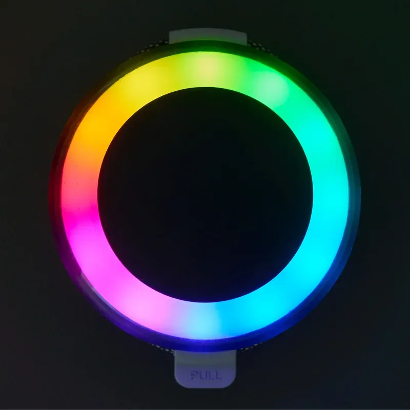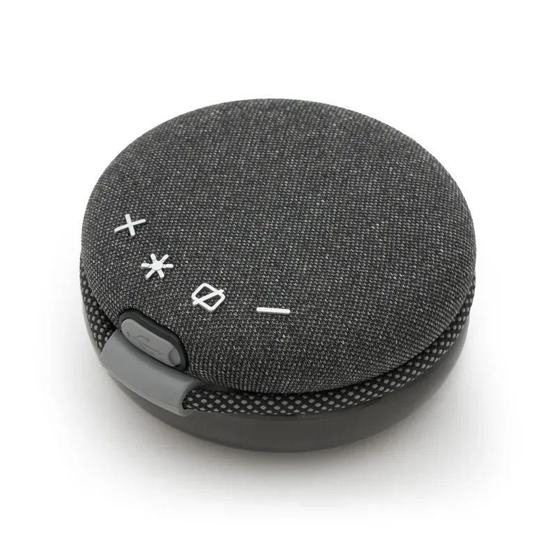 El parlante Fullmoon cuenta con luces led multicolor y una correa ajustable para que lo lleves a donde quieras. Está fabricado en ABS y silicona, con un recubrimiento de tela.