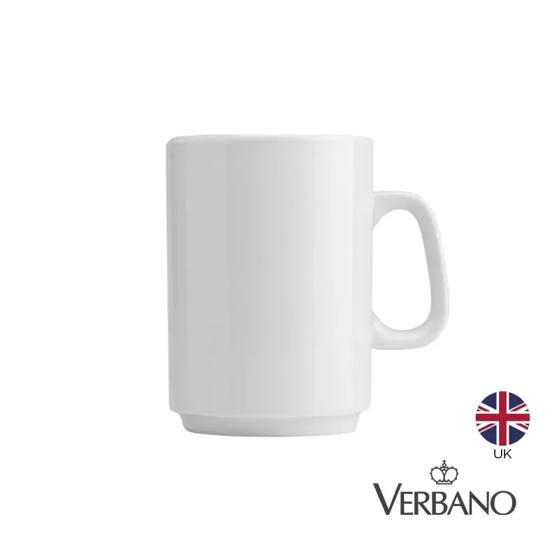 Taza de Porcelana recta con asa. Resiste altas temperaturas.