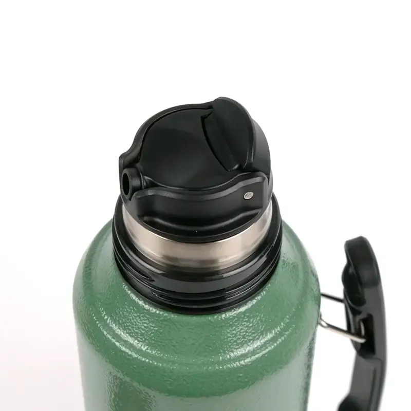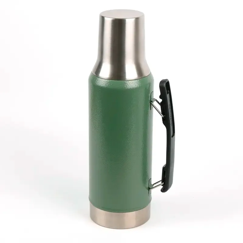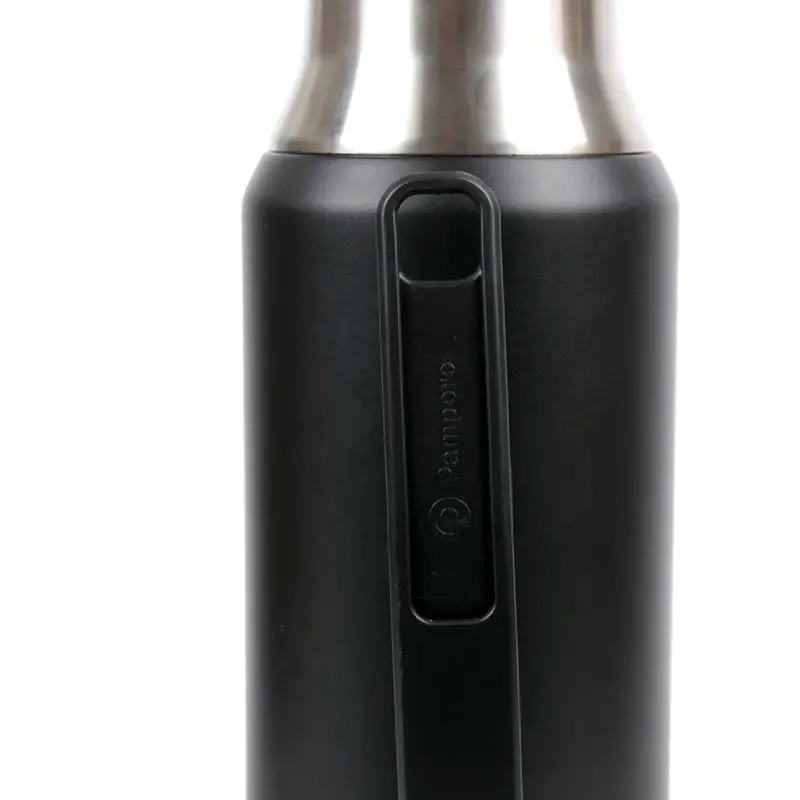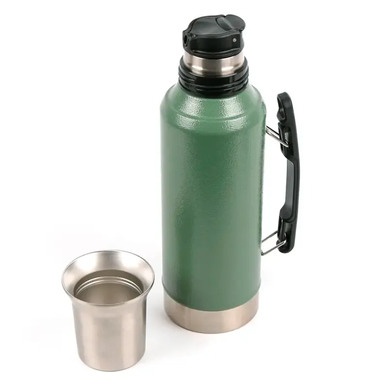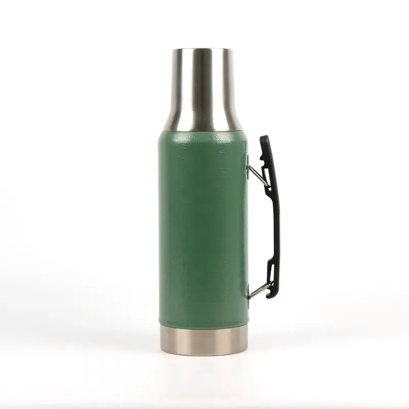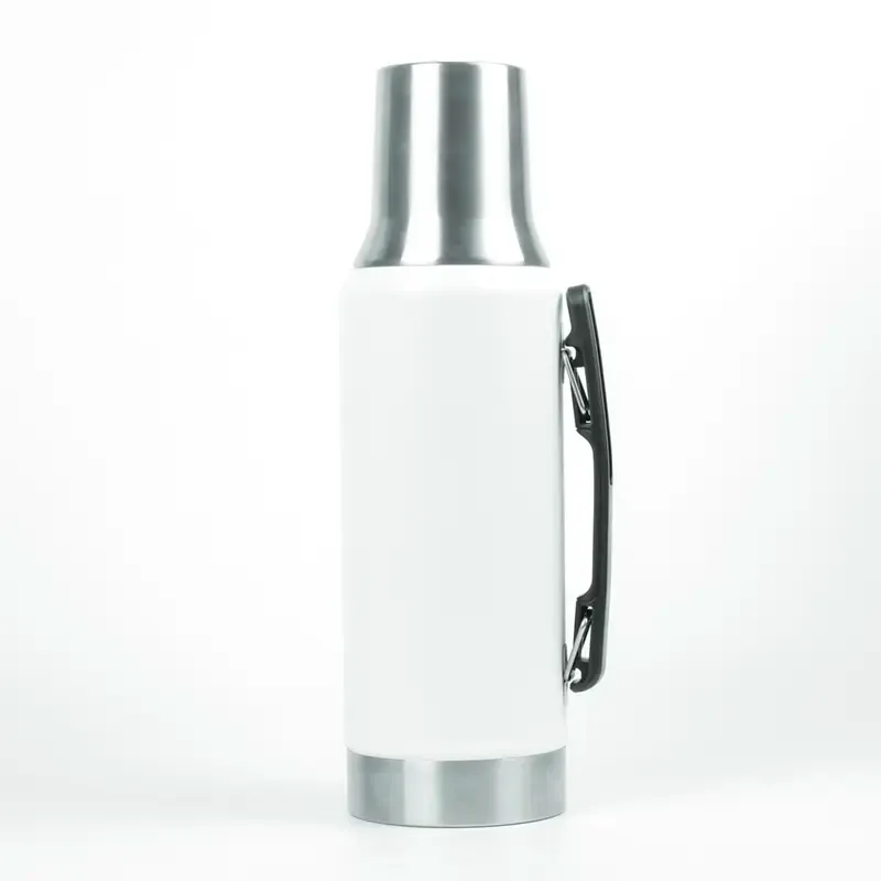 Termo de acero inoxidable con tapa multifunción, fabricado en acero interior 304 y exterior 201. Cuenta con tapa que puede utilizarse como mate, pico cebador, sistema de cierre seguro y asa lateral para un agarre cómodo. Es ideal para mantener bebidas calientes o frías durante largas jornadas de trabajo, actividades al aire libre o viajes, gracias a su capacidad térmica y diseño resistente.