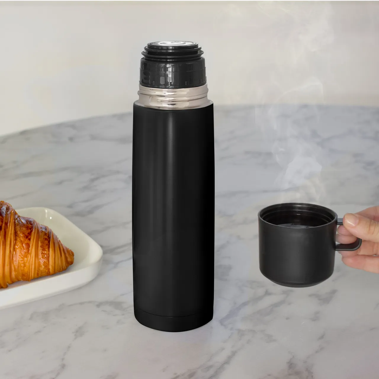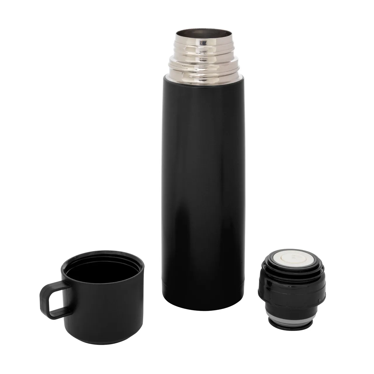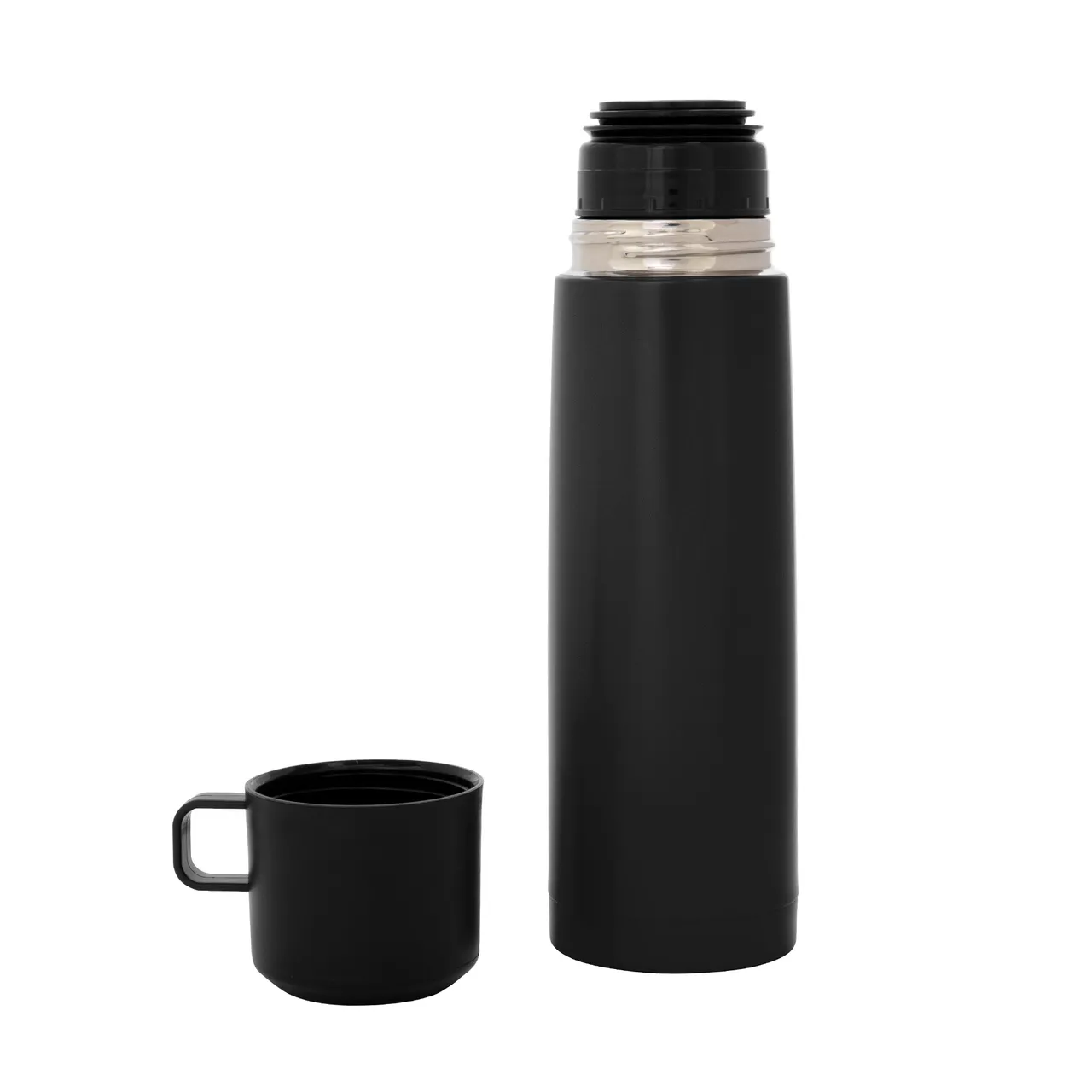 Disfruta de cada sorbo, caliente o frío.Termo con doble pared sellado al vacío. Tecnología vacuum. Acero inoxidable 304 interior / 201 exterior. Tapa y taza plásticas en color negro. Pintura acabado mate. Mantiene hasta 6 hs la temperatura de las bebidas calientes y 12 hs de las bebidas frías.Medidas: Ø 7 x 24 cm