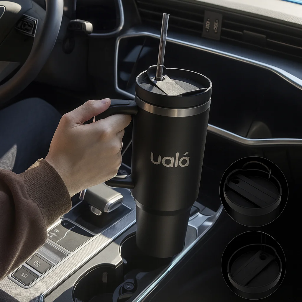 Diseño humanizado: El termo viene con un asa antideslizante, que es conveniente para llevar. Con pajita incluida, puedes beber sin desenroscar el tapón.